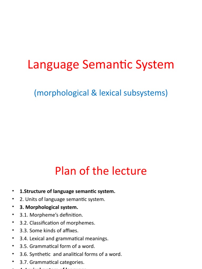 Besides the native words have a wider range of lexical and grammatical valency, they are highly polysemantic and productive in forming word clusters and set expressions lexical morpheme. L derivational morpheme g function words g.